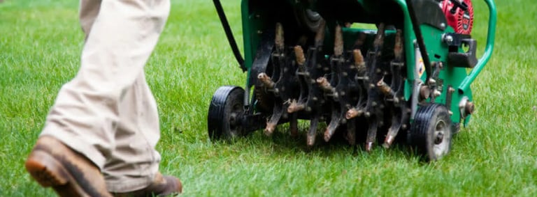 Aeration breaks up compacted soil and helps decompose thatch buildup, preventing disease and promoting better water absorption.